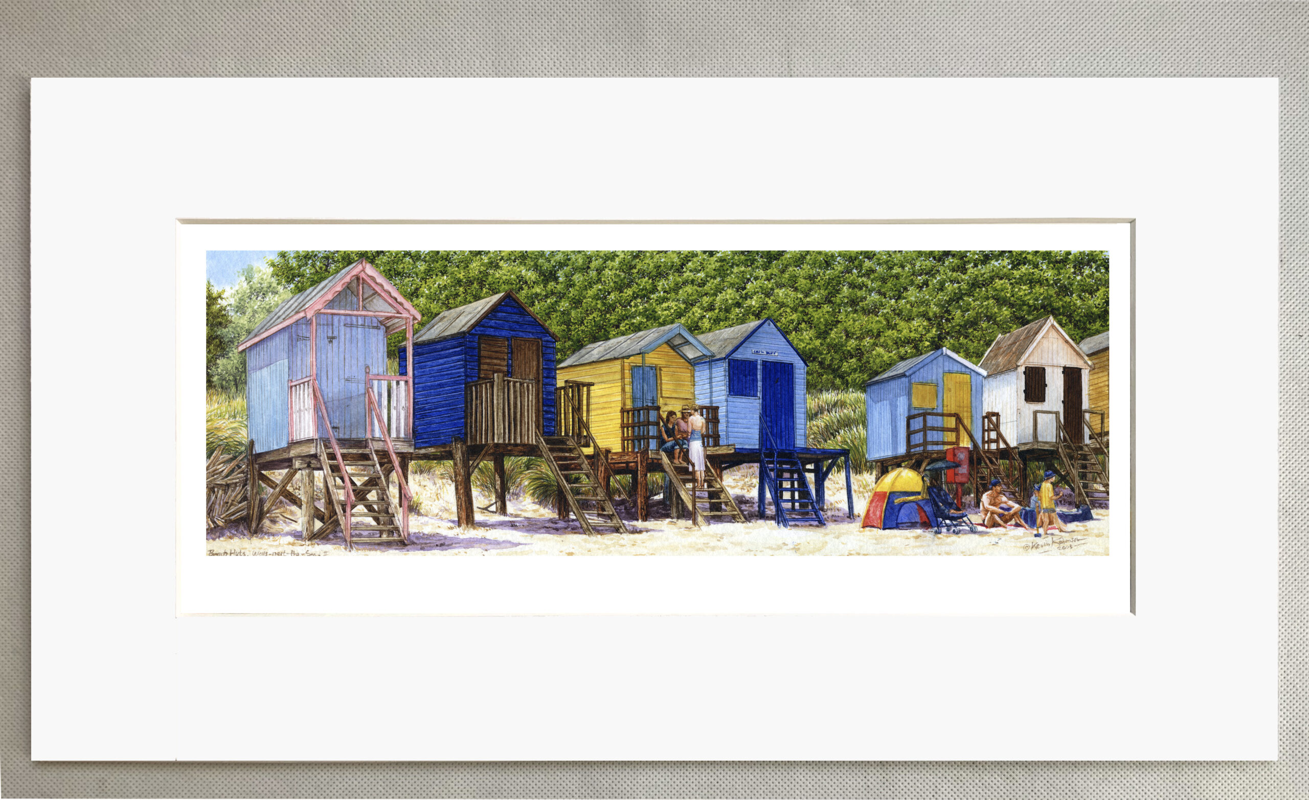 Beach Huts Wells, Norfolk Coast. 10 x 18 inch White core mount.