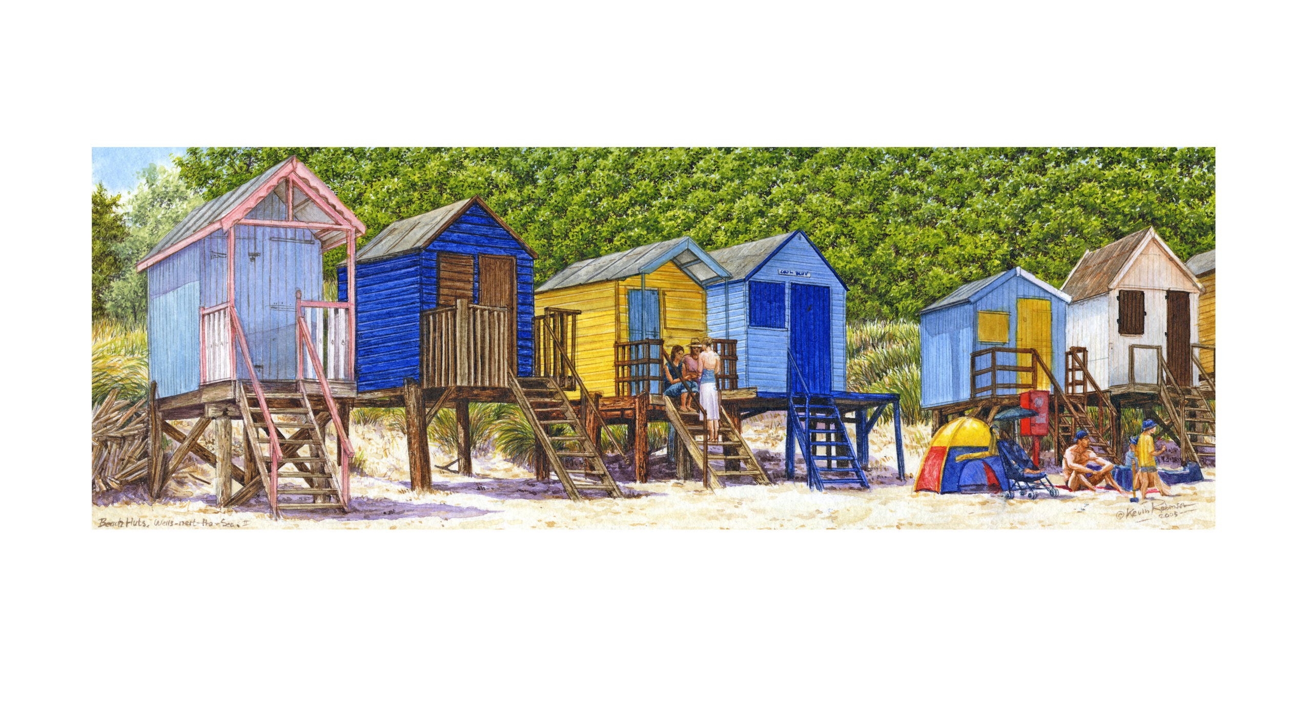 Beach Huts Wells,10 x 18 mounted Print